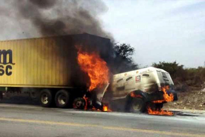 NOTICIAS 20/12/2015Camioneta de valores arde tras chocar contra tráiler; hay 3 muertos