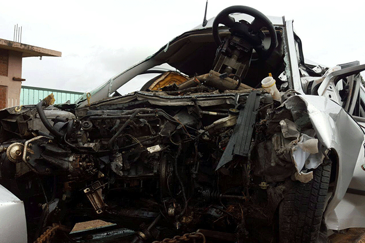 NOTICIAS 13/12/2015Encontronazo de auto y camioneta?Un encontronazo entre un automóvil y una camioneta dejó como saldo un muerto y dos lesionados, accidente registrado en la carretera Quiroga-Capula, donde a decir de la Policía uno de los dos automotores invadió el carril contrario al que circulaba.