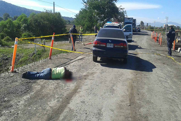 NOTICIAS 11/12/2015Podría ser taxistaUn hombre que fue ultimado de dos balazos en la cabeza, quien podría ser un taxista, fue hallado sobre una brecha que conecta al fraccionamiento Arko San Antonio con la Avenida Cointzio, al poniente de esta capital, donde también fue localizado un vehículo de alquiler con manchas de sangre, trascendió en la labor noticiosa.