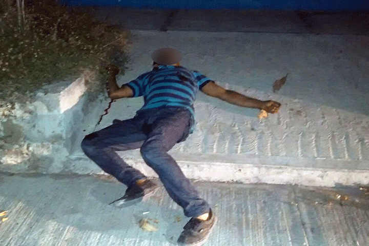 Un individuo que está sin identificar fue localizado con huellas de tortura, inmovilizado de pies y manos con cinta industrial, con plástico transparente y una sudadera de color blanco con azul envuelta en la cabeza y con un balazo en la nuca.