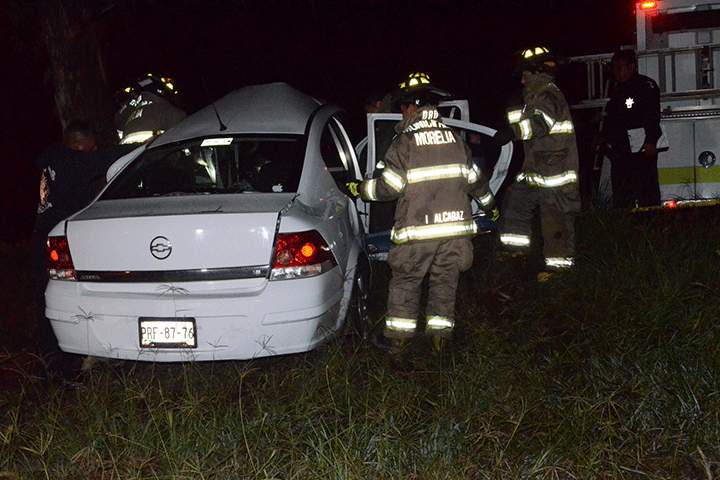 La volcadura de un automóvil tuvo un trágico desenlace, pues dos de sus tres jóvenes ocupantes perdieron la existencia, esto sobre el tramo carretero Los Reyes-Peribán, a la altura de la desviación al municipio de Buenavista.
