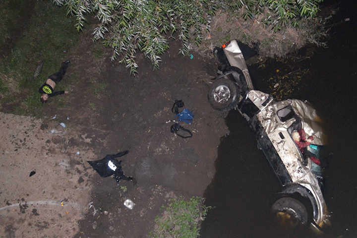 NOTICIAS 26/07/2015Dos muertos en volcaduraTras una aparatosa volcadura de camioneta, la cual cayó al Río Grande, falleció un elemento de la Fuerza Ciudadana de Tránsito (FCT), además murió su nieto y cuatro familiares más resultaron gravemente lesionados, entre ellos tres menores de edad.
