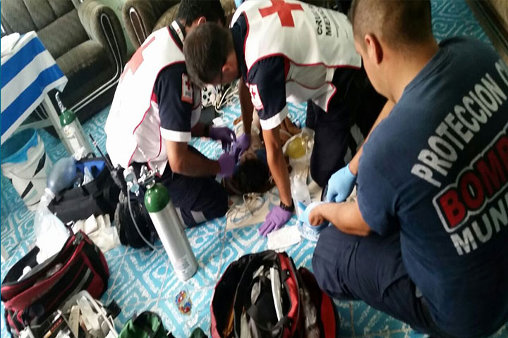 Policías y paramédicos de Protección Civil Estatal de inmed... Ver más...