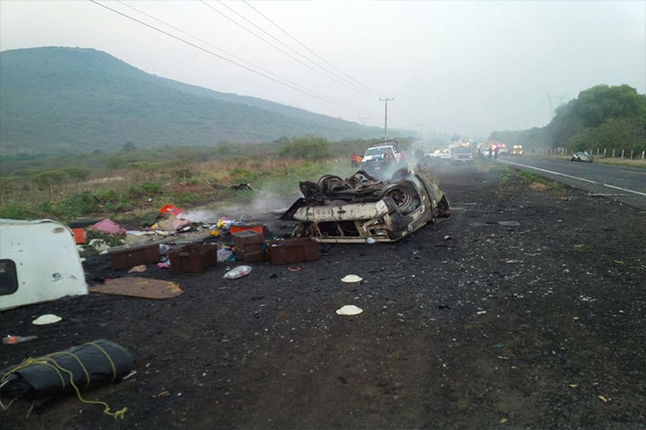 NOTICIAS 14/05/2015Un calcinado y 3 lesionados deja un choque en Tangancícuaro