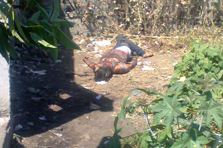 Al medio día de este lunes, el cadáver de un joven que fue asesinado con un arma blanca, fue localizado en un lote baldío a espaldas de un expendio de cerveza en esta ciudad de Nueva Italia.