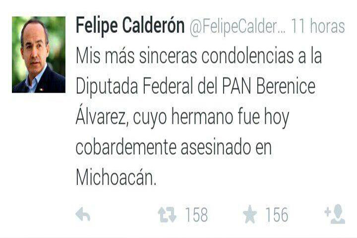 NOTICIAS 03/03/2015Ejecutado en la glorieta del Tec era hermano dela diputada "Bere" ÁlvarezRigoberto Ordaz Álvarez, de 44 años de edad, empresario agricultor, oriundo del municipio de Tepalcatepec, ejecutado a balazos el lunes pasado cuando iba en su coche y recién abandonaba una tienda de autoservicio, en la entrada a la zona residencial Altozano, en esta capital, resultó ser medio hermano de la diputada federal panista, Martha Berenice Álvarez Tovar.