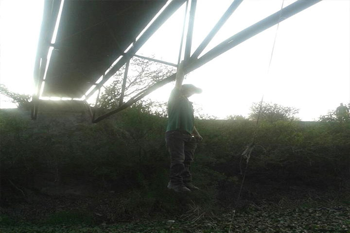 De una cuerda sujetada a la estructura de un puente peatonal pendía un ahorcado, quien fue encontrado la tarde del pasado miércoles y reportado a las autoridades ministeriales.