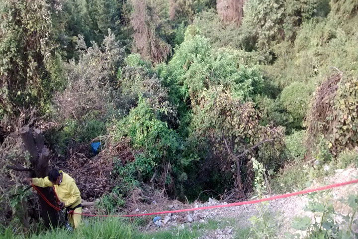 Un cadáver masculino fue encontrado aproximadamente a 25 metros de profundidad en una barranca ubicada a espaldas del bar Roof, localizado en el asta bandera, las causas de su muerte se investiga.
