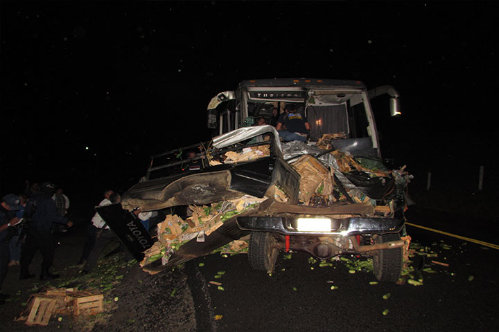 NOTICIAS 28/09/2014Un muerto y 9 heridos deja choque entre camioneta y autobús