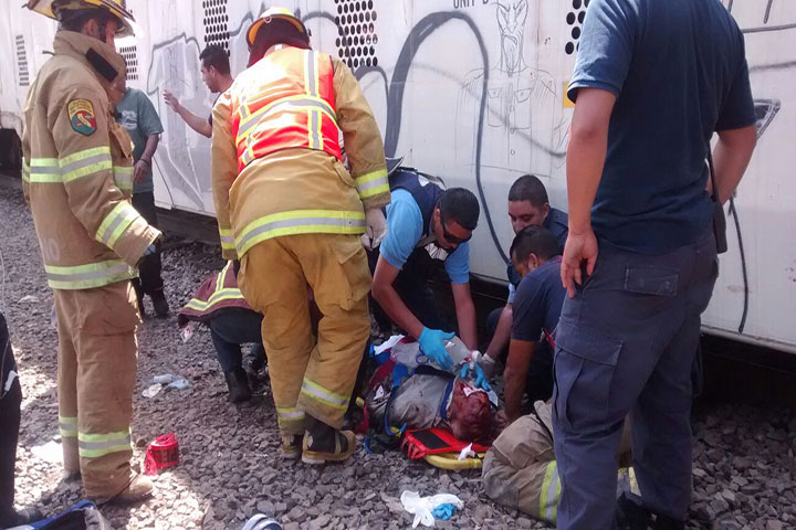 Un hombre sufrió la amputación de su brazo derecho, asà como diversas contusiones tras ser atropellado por el ferrocarril de la empresa Kansas City Southern (KCS). Bomberos y paramédicos de Protección Civil Estatal (PCE) ayudaron al afectado y de inmediato lo trasladaron al hospital del Instituto Mexicano del Seguro Social (IMSS), donde desafortunadamente murió.