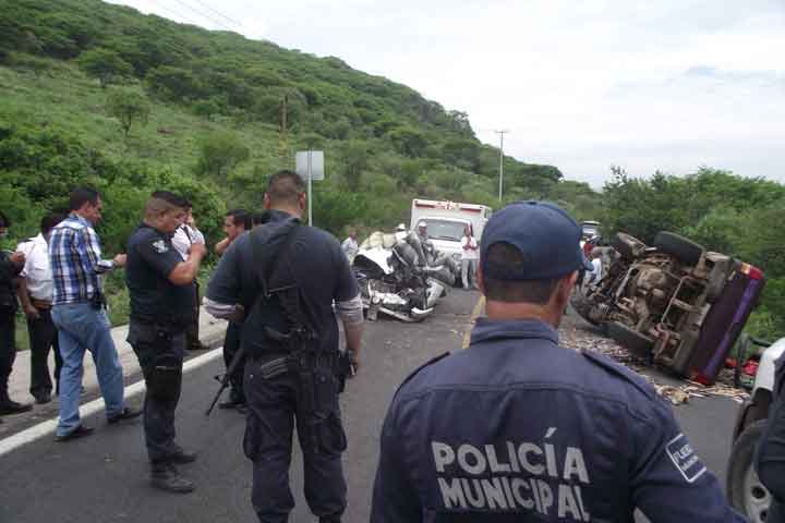 Trágico accidente se registró la tarde del pasado martes, en la carretera Sahuayo-Tizapán, en esta municipalidad, donde una camioneta y un taxi chocaron de frente, con saldo de un muerto y siete heridos, situación que provocó la movilización de socorristas y corporaciones policiales.