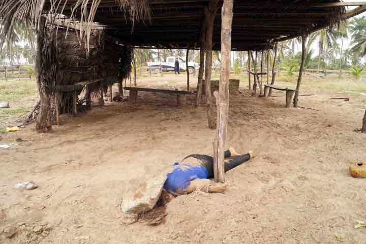 El cuerpo sin vida de una joven mujer fue localizado entre las playas Barra de Pichi y Barra de Santa Ana. La infortunada tenía la cabeza destrozada con enorme roca.