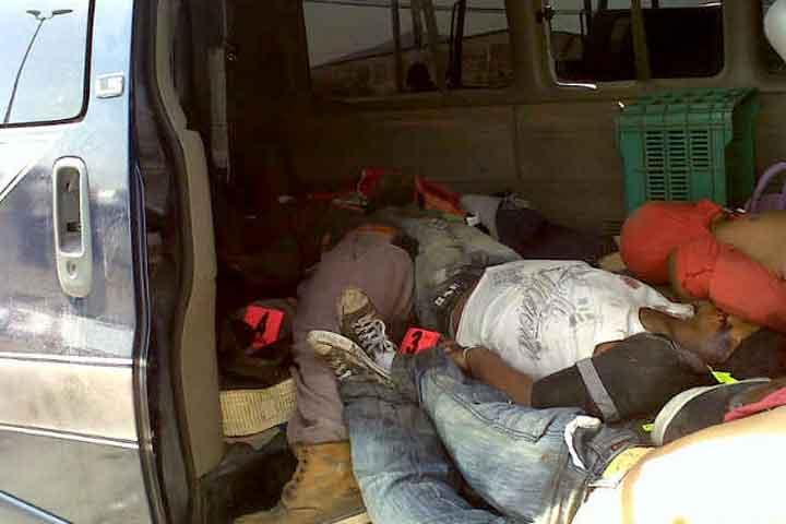 Las víctimas quedaron a bordo de una camioneta Chevrolet, Express, con placas del estado de Zacatecas; a un lado de dicha unidad también se encontró un vehículo pick - up, con matrícula de Sinaloa, el cual estaba abandonado.