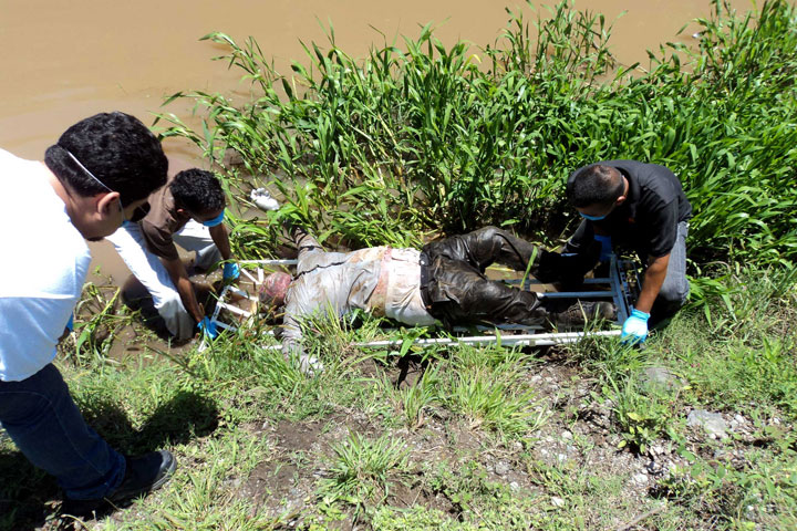 Un hombre de la tercera edad que estaba desaparecido desde el pasado lunes, de acuerdo con sus familiares; fue localizado muerto a una orilla de un canal de riego agrícola, ubicado a unos metros del camino que comunica a las rancherías El Capire y La Laguna, en esta municipalidad. El cuerpo tenía amarrada una cinta al cuello y presentaba un golpe en la cabeza.
