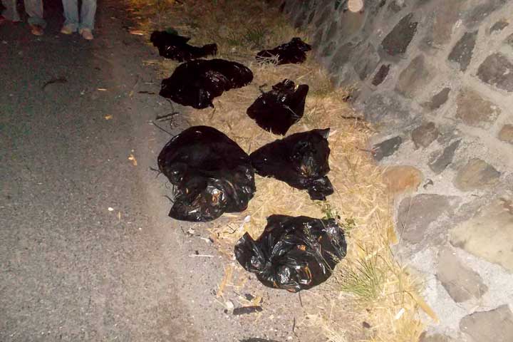 Desmembrados y dentro de siete bolsas plásticas fueron hallados dos cadáveres masculinos debajo de un puente ubicado en la Autopista de Occidente México-Guadalajara.