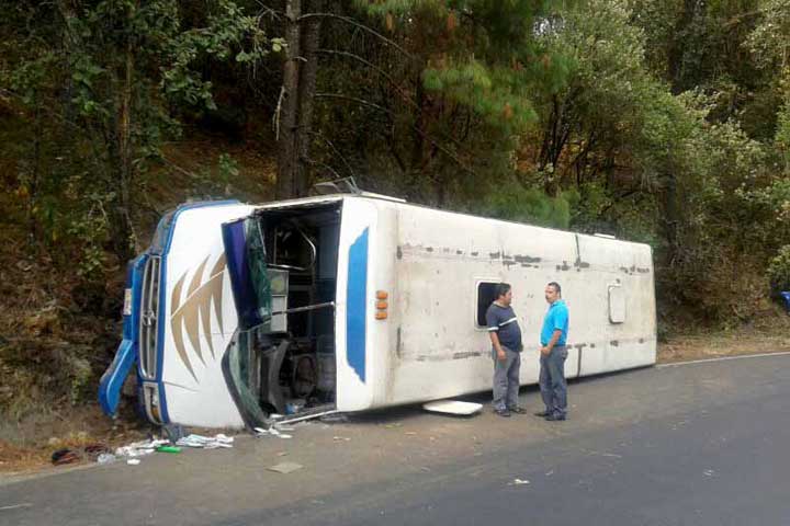El choque entre un camión "guajolorero" y un automotor tipo torton dejó como resultado una pasajera muerta, además de un lesionado sobre la carretera San Juan-Tancítaro, lugar donde quedó volcada la referida unidad del Transporte Público.