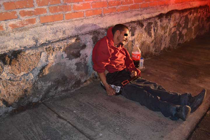 Recargado en una barda y con un pomo a su lado fue encontrado el cadáver de un sujeto desconocido, en la colonia Primo Tapia Oriente, de Morelia. La Policía ya investiga el caso, pues en las muñecas el individuo tenía marcas como si hubiese estado maniatado aunque no presentaba otras huellas de violencia.