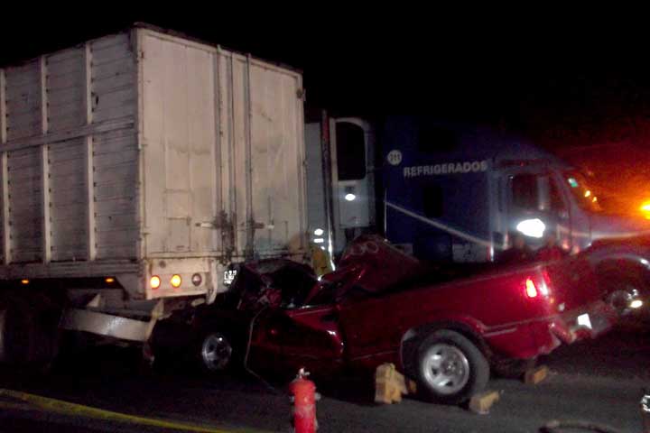 Un hombre perdió la vida al quedar prensado, cuando la camioneta que conducía se estrelló por alcance contra un vehículo tipo torton, en la carretera Zamora - La Piedad, en Zamora