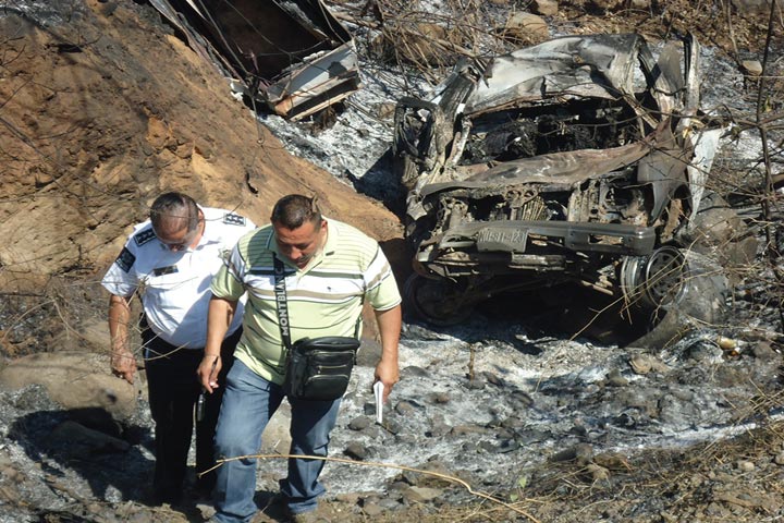 Completamente achicharrados quedaron los cadáveres de dos hombres luego de que la camioneta en la cual viajaban se precipitó a un barranco de al menos 10 metros de profundidad, ubicado a la orilla de la carretera Huetamo-Churumuco.