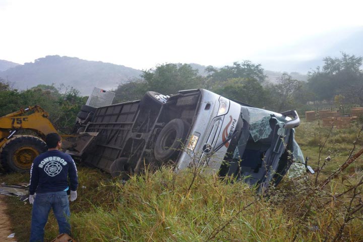 Cinco muertos, entre ellos una juez menor de lo penal y un pediatra de esta ciudad, además de 13 lesionados, entre los cuales están dos doctores, de esta población, fue el saldo mortal de la volcadura de un autobús, el cual al parecer circulaba a exceso de velocidad.