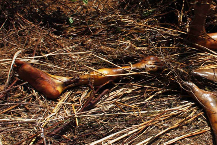 El cadáver putrefacto y desnudo de una mujer, a quien asesinaron al degollarla, fue encontrado por lugareños a una orilla de la carretera Caleta de Campos-El Corralón, en Lázaro Cárdenas.