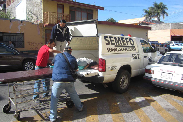 El ahora occiso alcanzó a ser trasladado por sus familiares al Hospital Civil, de Uruapan, pero al ser atendido en el área de urgencias pereció.