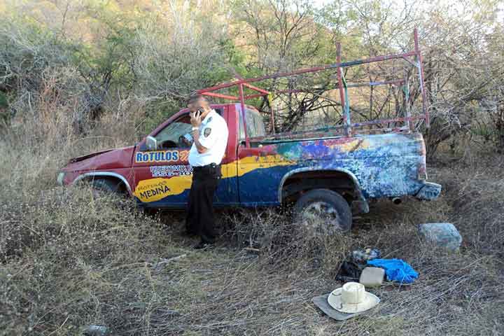 Un joven murió y otro se debate entre la vida y la muerte, después de que la camioneta donde viajaban se saliera de control y volcara, en la carretera Temazcal-Ciudad Altamirano, en Huetamo.
