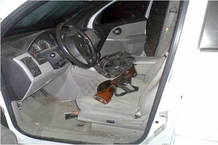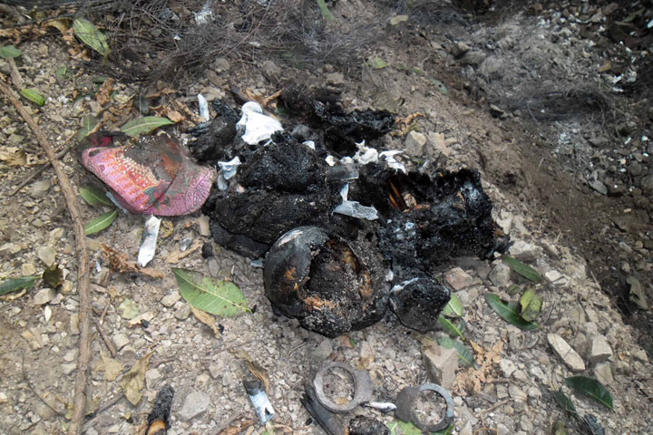 Los cuerpos estaban completamente calcinados y en lugar fueron encontrados varios casquillos percutidos de fusil AR15 y de pistola .9 milímetros, además de dos juegos de esposas y restos de ropa de los ahora occisos.