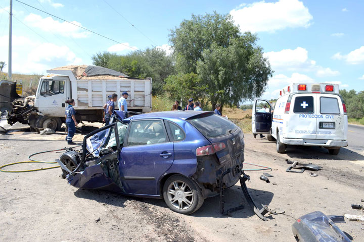 Completamente prensado y muerto quedó un joven luego de que su unidad vehicular se impactara frontalmente contra un camión de carga pesada sobre el tramo carretero Morelia-Queréndaro.