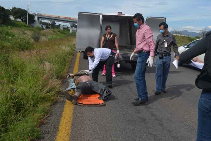 El cuerpo de un hombre hasta el momento no identificado, con visibles huellas de tortura, cubierto del rostro y atado de pies y manos, fue localizado sobre el acotamiento de la Autopista Siglo XXI, cerca del puente de San Pedro Barajas, La Huacana.