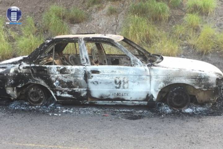 Huesos humanos calcinados fueron encontrados por las autoridades investigadoras dentro de un taxi quemado, esto en la carretera Cuatro Caminos-Nueva Italia, a donde acudió el personal de la FiscalÃa Regional de Justicia de Apatzingán para indagar el asunto.