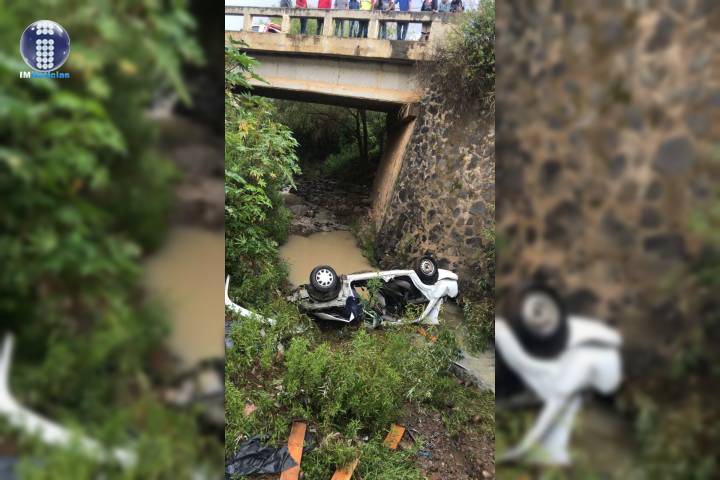 De forma trágica falleció el conductor de un automóvil al quedar prensado dentro de su unidad, luego de chocar contra una camioneta y caer de un puente para terminar en un arroyo en este municipio de Tangancícuaro.
