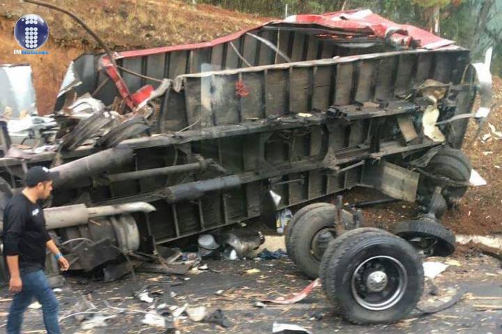 El siniestro ocurrió en el tramo carretero Uruapan-Pátzcuaro, cerca de la caseta de cobro de Zirahuén, donde el tractocamión quedó volcado sobre la cinta asfáltica y la otra unidad se precipitó por un barranco.