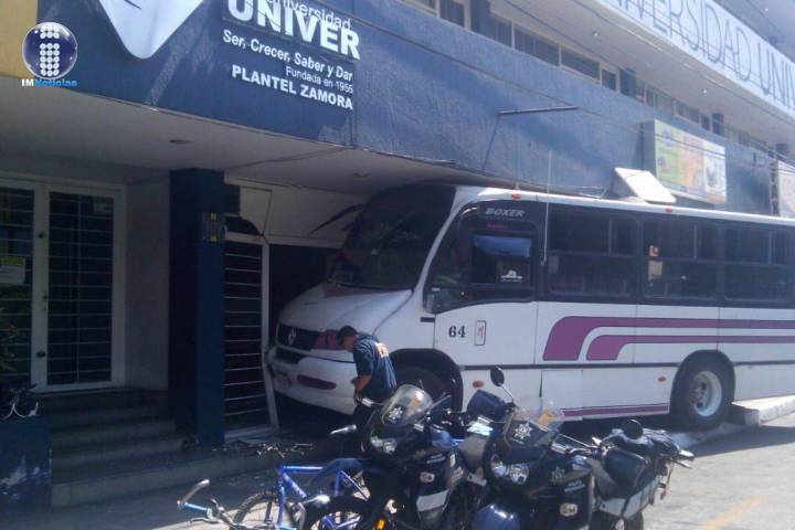 NOTICIAS 01/04/2018Camión de la Ruta Rosa impacta contra las instalaciones de la UniverAl mediodía este domingo, el conductor de un camión del transporte público perdió el control de su unidad y esta se impactó contra las instalaciones de la escuela de gastronomía Univer, en la zona Centro de esta ciudad de Zamora. Según los primeros reportes el conductor del automotor al parecer sufrió convulsiones previo al accidente.