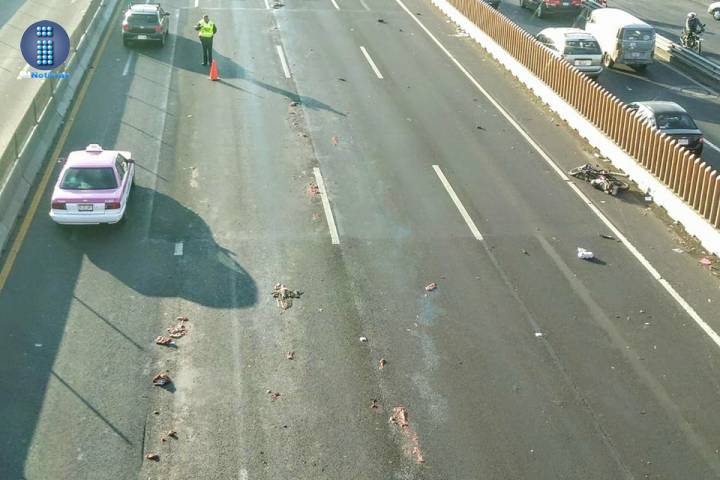 NOTICIAS 10/03/2018Fallece arrollado un motociclista en la Autopista México-Puebla Completamente destrozado quedó un motociclista al ser arrollado por un vehículo desconocido sobre el "Puente Rojo" de la Autopista México-Puebla.