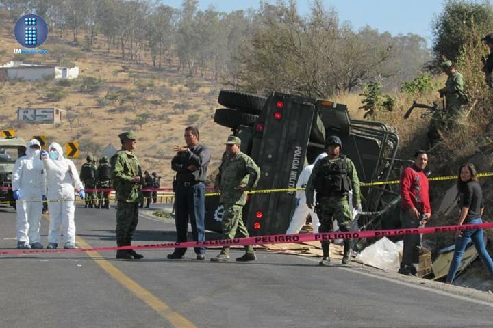NOTICIAS 13/01/2018Vuelca camión del Ejército; un soldado muere y hay 24 heridosUn camión militar volcó en la carretera Morelia-Mil Cumbres y a raíz del accidente hubo un muerto y 24 lesionados, de acuerdo con los datos recabados por esta agencia de noticias.