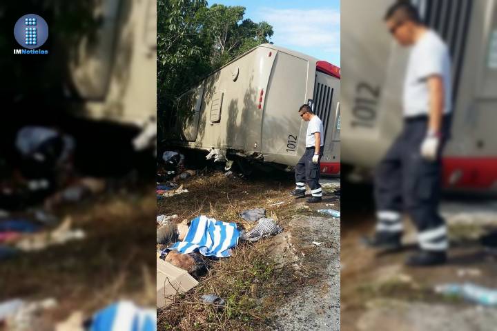 NOTICIAS 19/12/2017Volcadura de autobús deja 11 muertosComo consecuencia de la volcadura de un camión turístico, 11 personas fallecieron y 20 más resultaron lesionada en el tramo carretero Cafetal-Mahahual, en el estado de Quintana Roo.