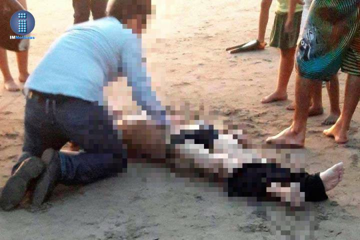 El hallazgo fue hecho por un par de niños que paseaban por la tenencia Playa Azul y lo sacaron del agua.