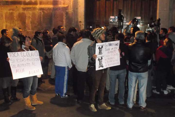 Una medida paliativa el incremento del 6% al agua potable aseguraron manifestantes que tomaron el palacio municipal de Morelia en punto de las 4 de la tarde de este sábado en la que integrantes de la Asociación de Usuarios del Agua de Morelia, Movimiento Ciudadano, PRD y el regidor panista, Miguel Ángel Villegas estuvieron presentes.