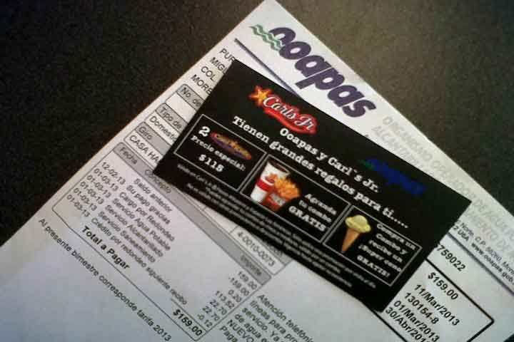 El Organismo Operador de Agua Potable, Alcantarillado y Saneamiento de Morelia (OOAPAS) lanza una nueva promoción para premiar a los usuarios cumplidos, ofreciendo cupones con promociones para acudir a Carl's Jr. La promoción se realizará durante la última semana de noviembre, a los usuarios que paguen su recibo en módulos y oficinas del Organismo Operador.