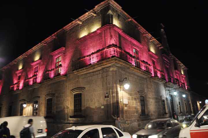 Con la iluminación en color rosa de algunos edificios del Centro Histórico, el Ayuntamiento se sumó a la campaña nacional para prevenir el cáncer de mama, padecimiento que cada año registra cientos de víctimas en el país.