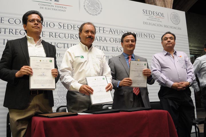 NOTICIAS 15/08/2013Electricidad a dos mil morelianosNuevas obras de electrificación, que beneficiarán a 30 colonias y comunidades rurales del municipio de Morelia donde habitan cerca de 2 mil 300 habitantes, se concretaron este jueves gracias a la firma de convenio entre el Ayuntamiento de Morelia, al frente de Wilfrido Lázaro Medina, con la Comisión Federal de Electricidad y la Secretaría de Desarrollo Social. Este fue un acto sin precedentes, ya que no se había dado un acto de arranque de ... Ver más...