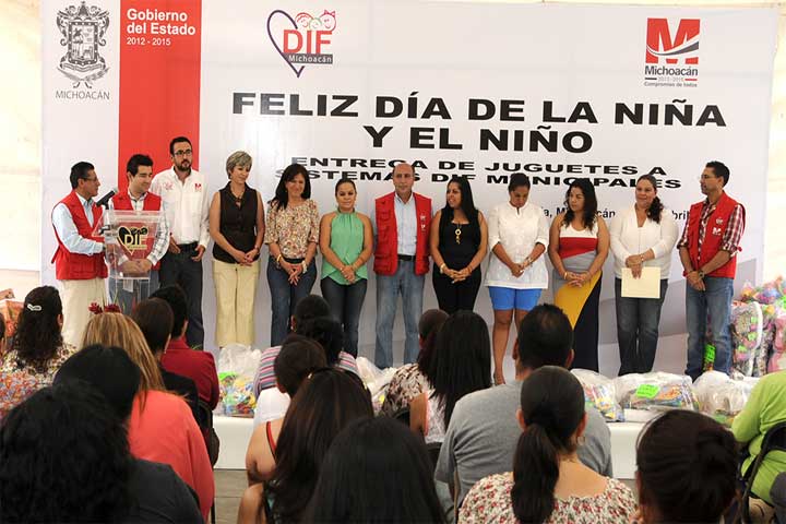 Miles de pequeños que habitan en los 113 municipios de la entidad, tendrán la oportunidad de recibir un juguete, tras la entrega de obsequios que realizó el Sistema para el Desarrollo Integral de la Familia Michoacán, a representantes de los sistemas municipales DIF, en el marco del Día del Niño a celebrarse el próximo 30 de abril.