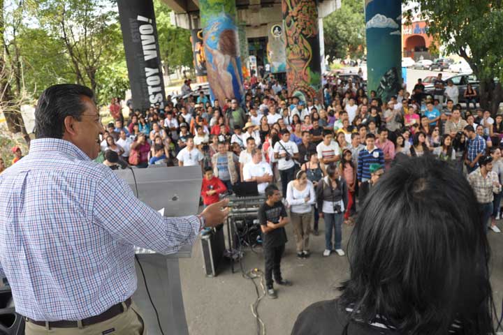 En una acción más por impulsar la creatividad y talento de los jóvenes morelianos, ofreciendo espacios para que puedan plasmar su creatividad artística y cultural, este domingo el presidente municipal de Morelia, Wilfrido Lázaro Medina, convivió con los artistas que convirtieron las columnas del puente vial de la colonia Tres Puentes de Morelia en -color vivo- a través de historias y mensajes para tener un mundo mejor.