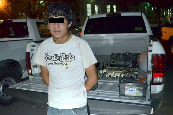 Un lavacoches que hurtó de un taller mecánico varias baterÃas de autos, un motor de un coche y una compresora, fue detenido por policÃas ministeriales que le seguÃan la pista de cerca.