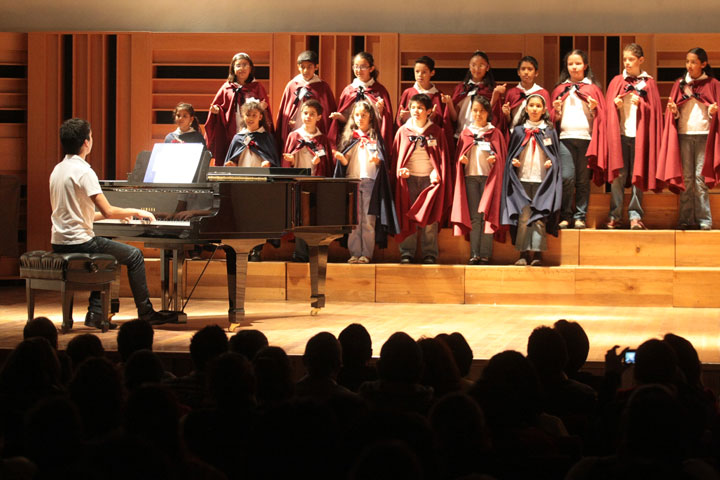 Conformados por niños de siete a doce años de cinco sedes la Tenencia de Capula, la Colonia Vasco de Quiroga, el Poliforum Digital y Colonia Trincheras puntos donde la delincuencia es de alto índice, se llevó a cabo el concierto "Muestra musical Navideña por los niños músicos por la paz".