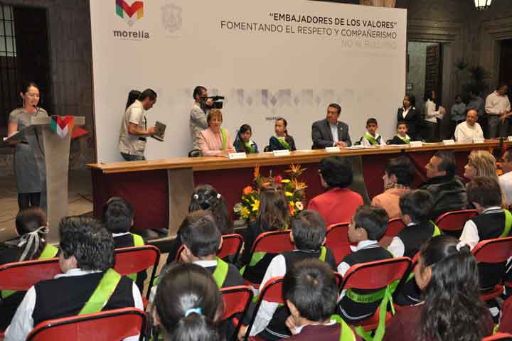 Para cumplir la meta de tener un Municipio Solidario debemos empezar por promover los valores en los niños, ellos son el futuro de la sociedad, así lo aseguró el Presidente Municipal, Wilfrido Lázaro Medina, durante la toma de protesta de pequeños morelianos que se anunciaron como embajadores de los valores en su casa y escuela diciendo "No al Bullying".