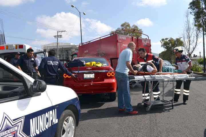 Una mujer de la tercera edad resultó herida, cuando el vehículo donde viajaba chocó contra un camión repartidor de refrescos, el cual le cortó la circulación al dar una vuelta prohibida en 2U".