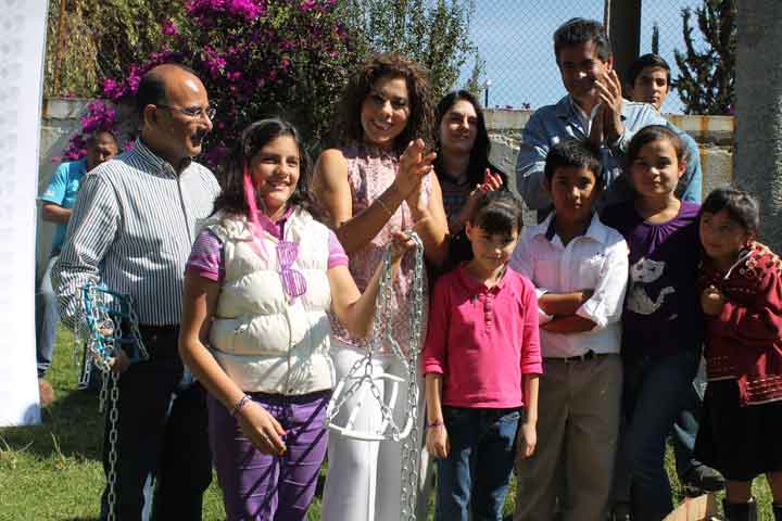 Para contribuir al sano esparcimiento entre la población infantil del municipio, promoviendo la convivencia familiar, el desarrollo motriz y el fomento al contacto con la naturaleza lo que genera una mejor calidad de vida entre las familias, la presidenta del Sistema DIF municipal, Maggy Oribio de Lázaro, entregó este día un paquete de juegos infantiles al área verde del Fraccionamiento Rinconada del Valle.