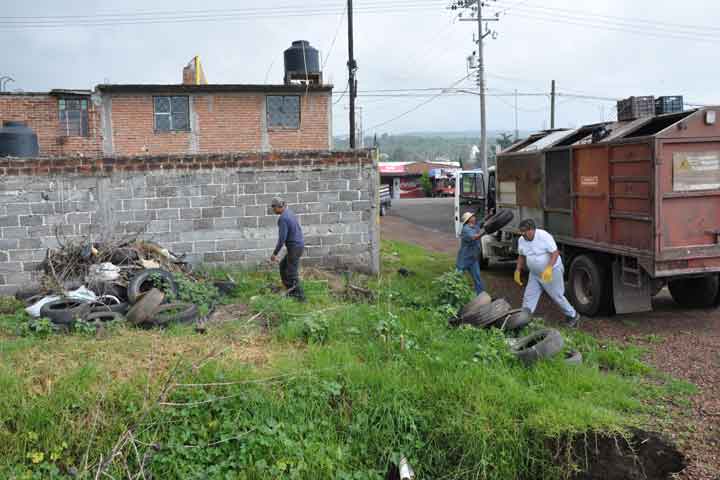 Alrededor de 250 llantas y más de una tonelada de basura, fueron recogidas de tiraderos clandestinos en la tenencia de Tiripetio, personal de la Dirección de Aseo Público, realizó tal acción como parte del programa Mano Dura Contra la Basura.